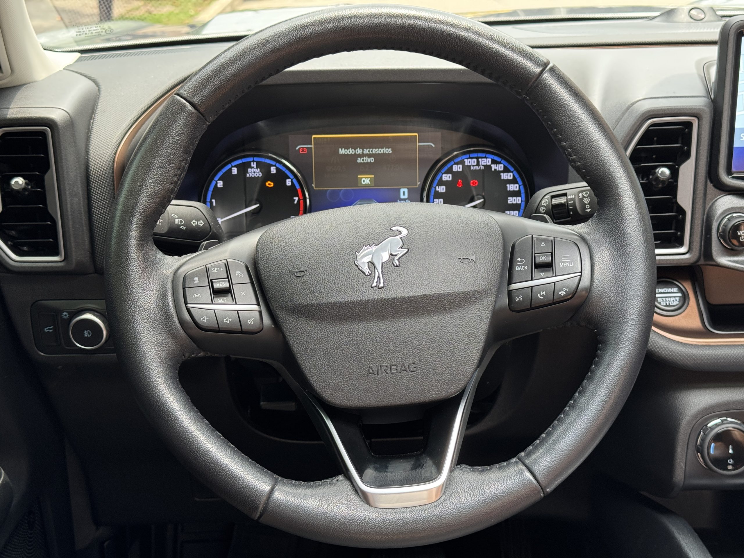 El Ford Bronco Sport 2.0 EcoBoost Wildtrak 4X4 es la versión más extrema del SUV compacto, con motor turbo de 245 CV, caja de 8 velocidades y sistema 4×4 con 7 modos G.O.A.T. Incluye llantas todoterreno de 17″, suspensión reforzada, cámara frontal con lavador y los asistentes de conducción más avanzados. Con capacidad de vadeo de 450 mm y diseño robusto, combina máxima capacidad off-road con el confort y tecnología de un vehículo moderno.